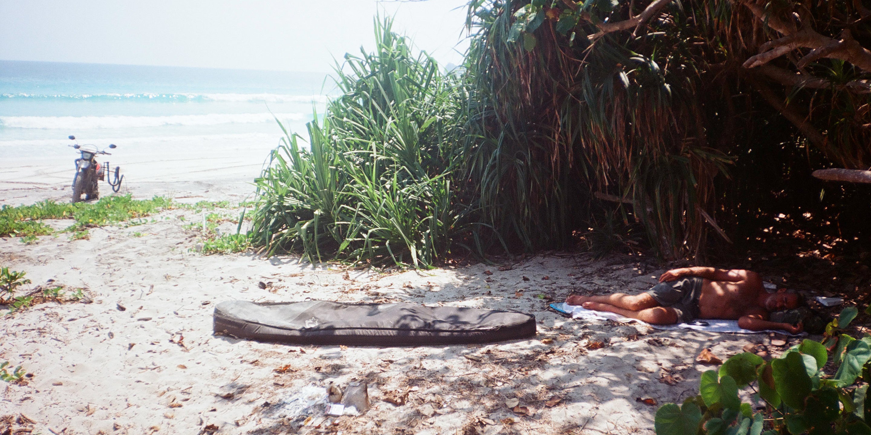 TOM DE SOUZA: "I took two boards with me: a 6’5" Jim Banks twin fin and a 6’9" Phil Myers ten-channel single fin. Jim was actually an inspiration for the trip; I met him in Bali a year prior and he insinuated there were still uncrowded waves in Indonesia, if you were willing to put in the effort to find them. He suggested heading east from Bali on a trail-bike would be the way to do it. That planted a seed. A year later, I came back ready for the trip. I asked Jim to shape me a board. He suggested that a 6’5" would be the perfect all-rounder in everything from waist high slop to double overhead tubes."