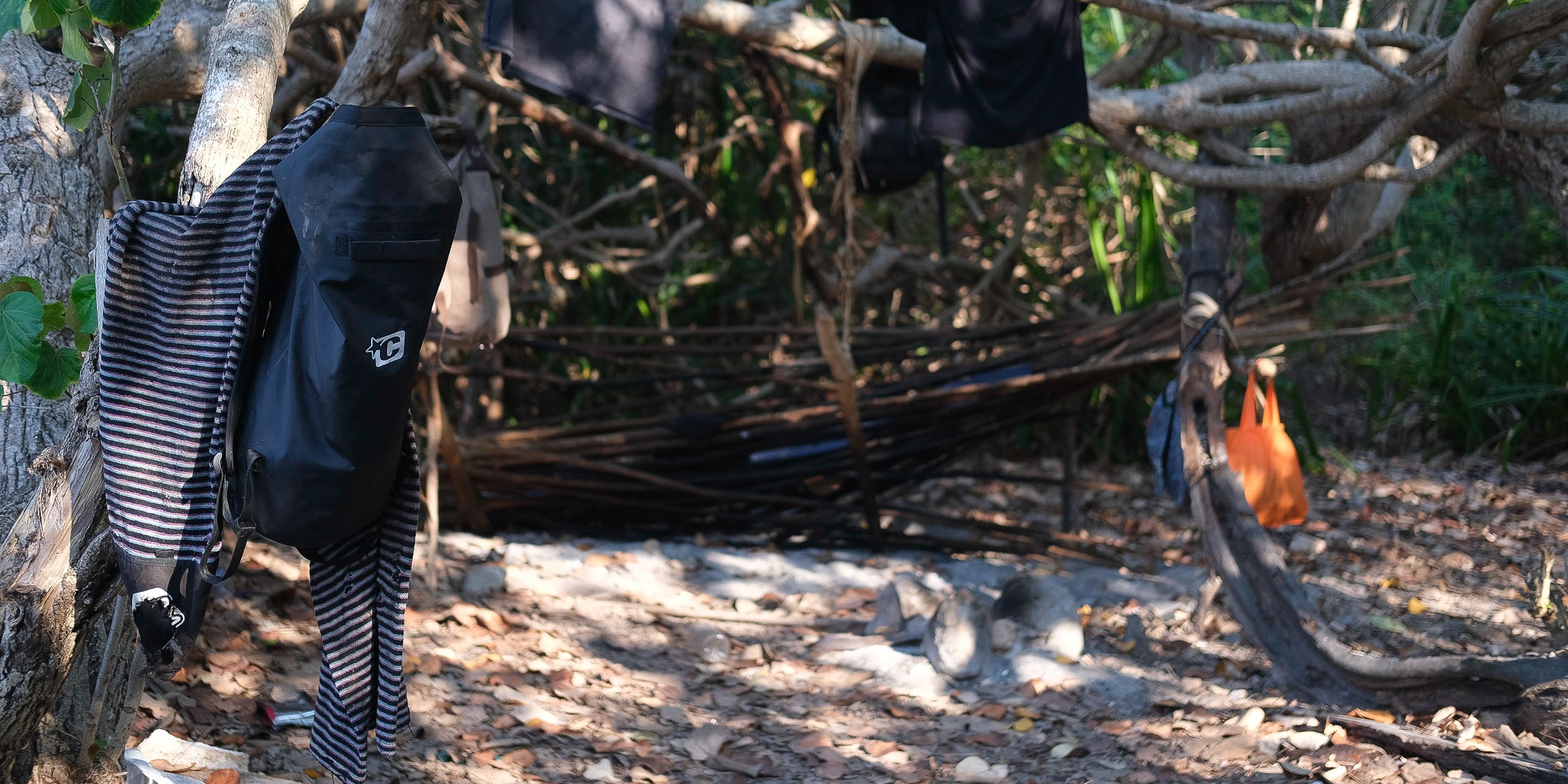 "CREATURES also kitted me out with a board bag and a heap of surf gear. When I was leaving Bali to begin the trip, I was trying to minimise all my stuff, and was almost going to leave the boardbag behind and just take board socks. I’m so glad I didn’t! That board bag was probably the most useful thing I travelled with. It doubled as extra storage on the side of the bike and I slept in it a bunch too. Other than that, yeah, just all the usual, coupla leggies, few blocks of wax, first aid kit. I feel it’s Murphy’s law with the first aid stuff; whatever you don’t take is what you need. I had a fairly comprehensive kit with bandages, sutures, disinfectant, sea ulcer cream, Stingose, and fortunately I didn’t need too much. Besides that it was just bare minimum. Rain jacket, hoodie (gets pretty cold on the bike at night), few t-shirts, boardies, computer, camera gear, notebooks, and hammock, which I didn’t even use. The boardbag was way more comfy."
